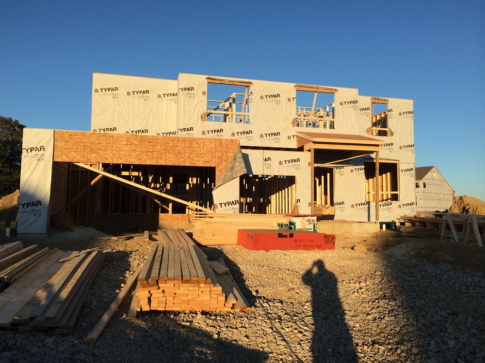 Went by on Saturday and the wood had been delivered but nothing was started. Today (Tuesday) they’re under way. Talk about PROGRESS! Door in the sun room is on the wrong wall so that will have to be dealt with.