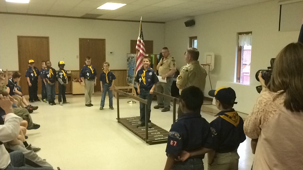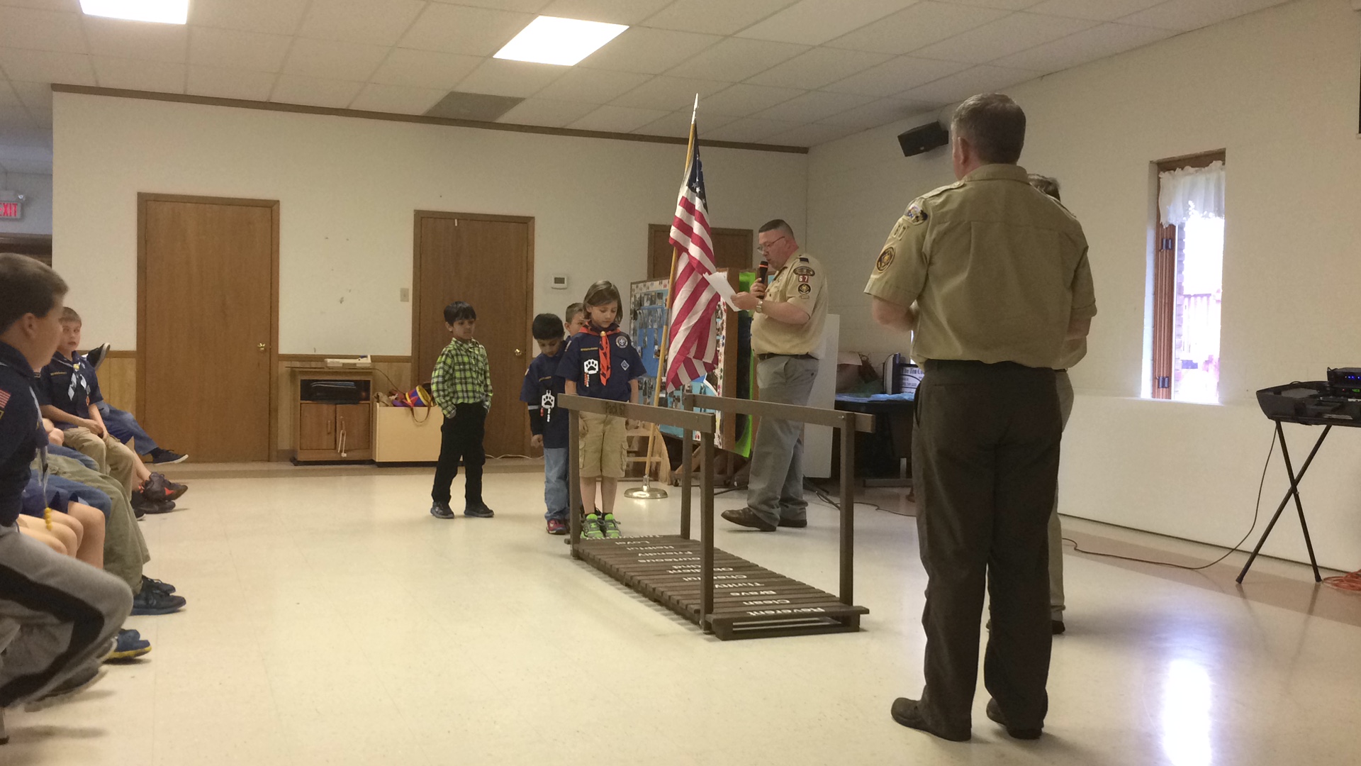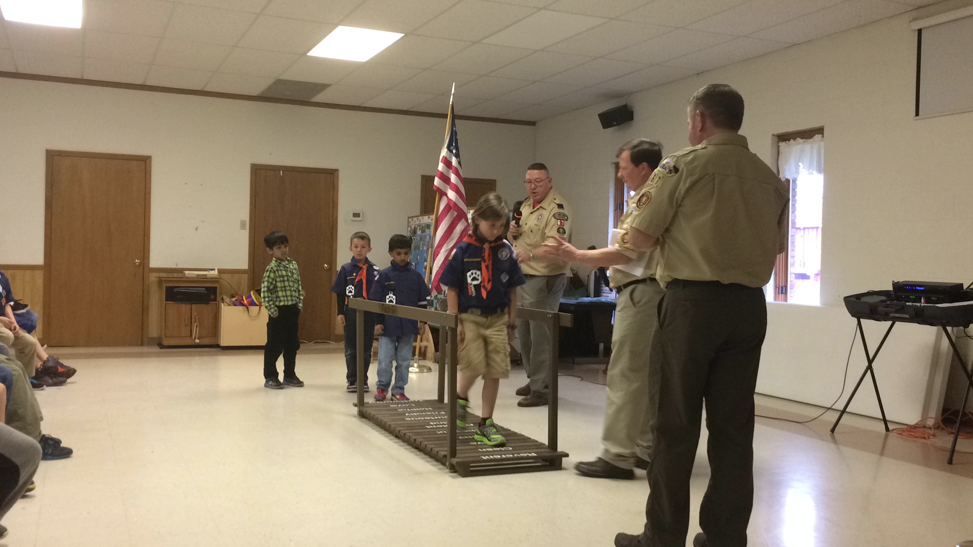 The older boys did their Cub Scout crossover last night. This represents the end of the scouting year and is when they go from one rank to the next. Crew went from being a Tiger to a Wolf and Grayson went from a Wolf to a Bear.