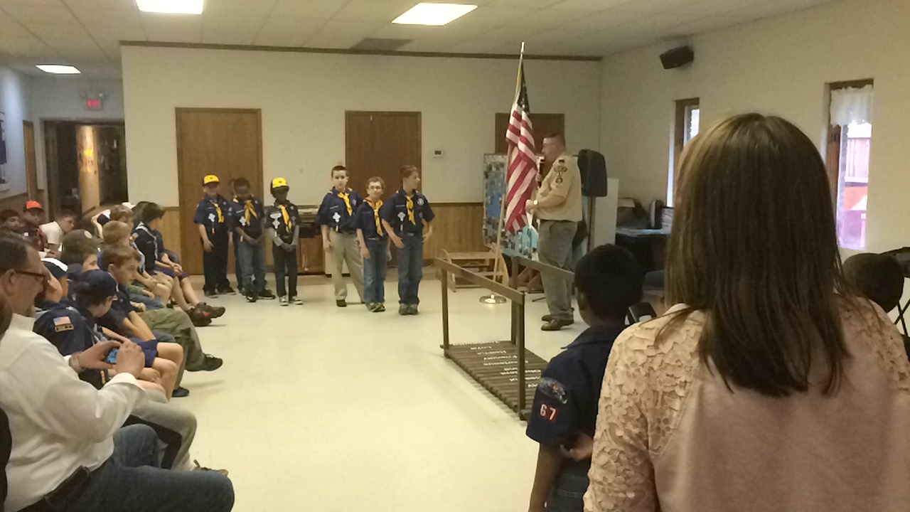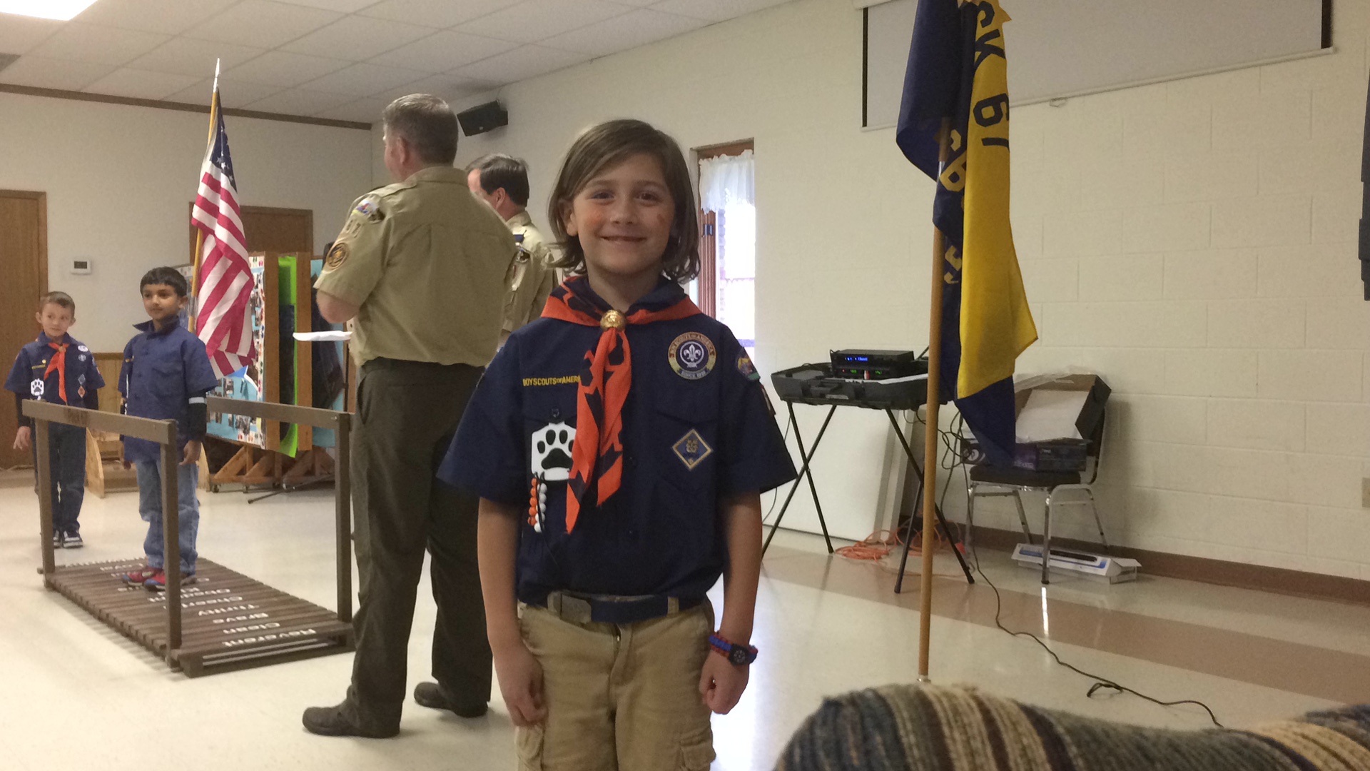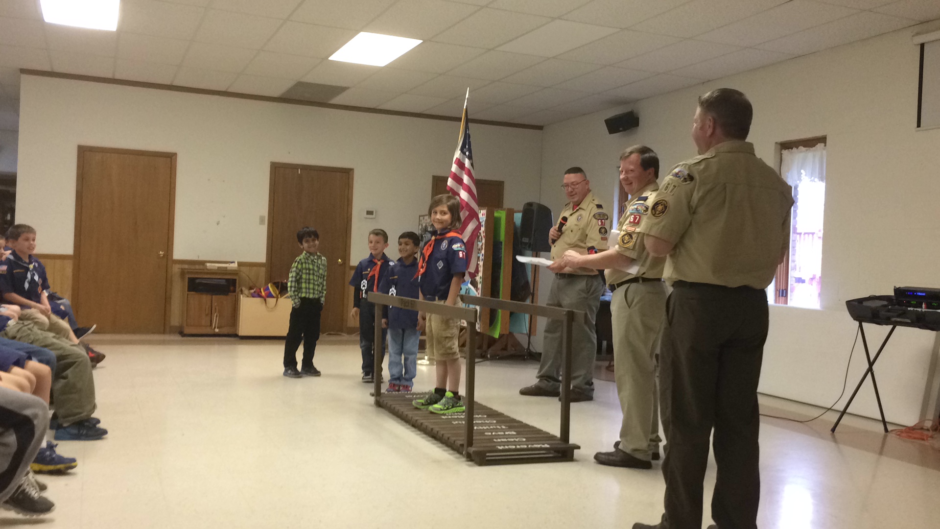 The older boys did their Cub Scout crossover last night. This represents the end of the scouting year and is when they go from one rank to the next. Crew went from being a Tiger to a Wolf and Grayson went from a Wolf to a Bear.